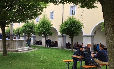 Wovon lebt ein Chorherr? Was sind die Einkünfte des Stiftes? Gibt es leere Wohnungen? Fragen, die bei den Führungen durch das Stift Schlägl dem Ökonomen Hr. Markus Rubasch gestellt wurden. In seiner Bescheidenheit gibt er Auskunft: "Wir sind 42 Mitbrüder. Wir begleiten 24 Pfarren. Jeder hat seine Aufgabe bis hin zum Religionsprofessor. Der Wald ist unser Hauptertrag. Für etwa 200 Personen sind wir Arbeitgeber. Da sind wir schon ein Impulsgeber in der Region. Ja, auch die Brauerei bringt etwas. Aber da muss auch wieder viel investiert werden." Schrittweise wurde das Stift in den letzten Jahrzehnten aufgebaut, erweitert, renoviert und modernisiert. Die sieben Höfe sind dem Besucher "neu". Das sind besondere Oasen. Derzeit wird an einem neuen Verwaltungsgebäude gearbeitet. Leere Wohnungen? "Es könnten gar nicht alle Mitbrüder im Stift wohnen, weil derzeit alle Wohnungen besetzt sind. Einige Chorherren wohnen wie bei uns üblich in den Pfarrhöfen und kommen zum Gemeinschaftsleben 'herein'. Wir haben Gott sei Dank junge Mitbrüder." Es müssen weitere Wohnmöglichkeiten geschaffen werden. Dabei wird schrittweise die Barrierefreiheit umgesetzt. Im Hof tummeln sich die Leute. Herr Paulus meint: "Was uns auszeichnet ist das lebendige Gemeinschaftsleben." Ein großer gemeinsamer Fernseher gewährleistet, "dass auch das Fussballschauen Spass macht".