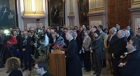 „Propst Maximilian versteht es die Herzen der Menschen aus verschiedenen Schichten anzurühren. Er ist ein ansprechender Redner, Vortragender und Prediger. Er scheut sich auch nicht, Dinge beim Namen zu nennen und er hat in allem Überzeugungskraft. Vieles geht auf seine Schaffenskraft und seine Energie zurück.“ So gratuliert der Stiftsdechant und Mitbruder H. Mauritius Lenz Propst Fürnsinn. Die Stiftskirche war voll mit Gästen und der Schönbergchor umrahmte die feierliche Vesper und den Festakt im Festsaal. Lenz weiter: „Wichtig ist Begeisterung und Überzeugung. Da ist er uns immer vorangegangen. Und: Er hat Humor.“ Lenz schildert Lebensstationen von Fürnsinn und verweist dabei dort und da auf Anektoten, die zum Teil in seiner Biografie nachzulesen sind. „Den tiefsten Halt hat er in Gott gesucht und gefunden.“ Als Geburtstagsgeschenk soll durch die tatkräftige Unterstützung vieler das hl. Grab in Herzogenburg renoviert werden.