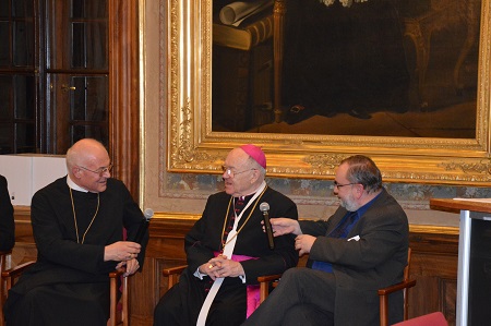 Das Kamingespräch über den Weg der Orden ins 3. Jahrtausend. V.l.n.r.: Abtpräses Christian Haidinger (Superiorenkonferenz der männlichen Orden Österreichs), Abtprimas Bernhard Backovsky (Stift Klosterneuburg) und Joachim Schmiedl (Katholische Universität Vallendar)