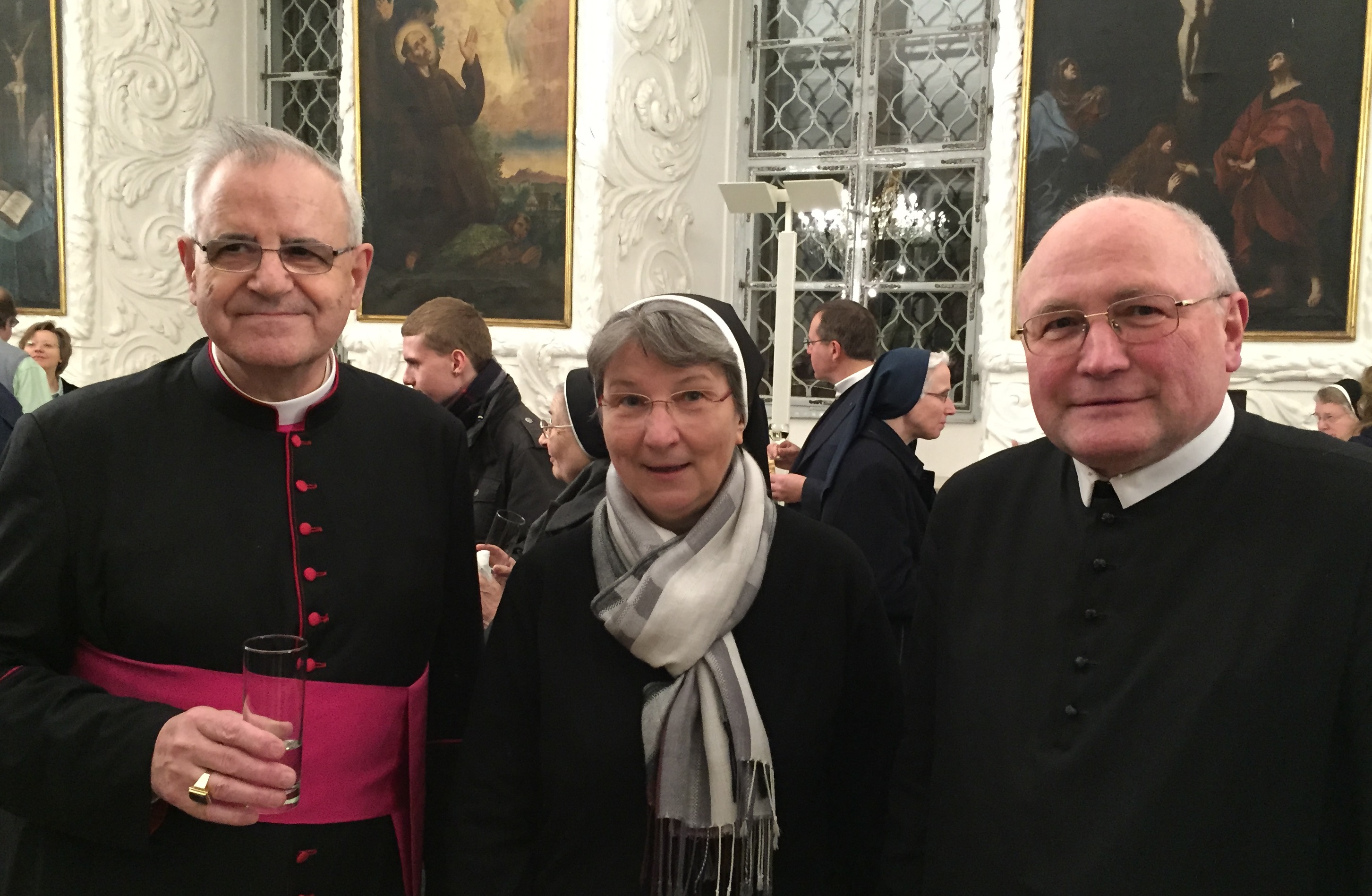 vlnr: Administrator Heinrich Schnuderl, Regionalvorsitzende Sr. Sonja Dolesch, Regionalvorsitzender Abt Benedikt Plank
