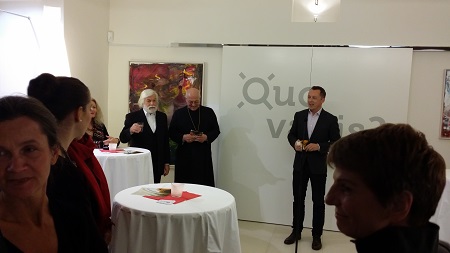 "Die Bilder sind anziehend und aussagekräftig und laden zum Verweilen ein. Sie laden ein, in einen inneren Dialog mit Formen und Farben zu treten", sagte Abtpräses Christian Haidinger, erster Vorsitzender der Superiorenkonferenz der männlichen Orden Österreichs und damit Hausherr im Begegnungszentrum Quo Vadis, in seiner Eröffnungsrede. "Vielleicht ist es hilfreich für das Verstehen der Bilder zu wissen, dass es Prof. Gottschlich ein großes Anliegen ist, aufgrund seiner eigenen Wurzeln zur Versöhnung zwischen Juden und Christen beizutragen. Ich bin in beiden Religionen Zuhause - das ist sein klares Bekenntnis, das mir bei unserer ersten Begegnung in Erinnerung geblieben ist."