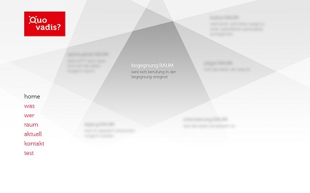 Das Design der Website transportiert das ruhige Design der Architektur des realen Quo Vadis?. Der Slogan der Ordensgemeinschaften Österreich - Freiraum für Gott und die Welt – wurde im Lokal am Stephansplatz 6 im 1. Wiener Gemeindebezirk architektonisch in idealster Weise interpretiert und umgesetzt. Die in Weiß und hellen Grautönen gehaltenen Flächen der Homepage wiederum reflektieren die interessanten architektonischen Winkel der realen Räumlichkeiten.