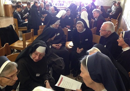 Sr. Silke Mallmann präsentiert sieben Veranstaltungen und Vorhaben im JAHR DER ORDEN 2015 in Kärnten. Darunter ist ein Seminar zum Thema „Älter werden im Orden“. Ein Treffen junger Ordensleute wird eingefädelt und der Tag des geweihten Lebens wird erstmals im Bischofshof stattfinden. Die besondere Beteiligung an der Langen Nacht der Kirchen wird vorbereitet sowie die Möglichkeit betont, dass Ordensleute in Schulen gehen. „Sie bitten – wir beten“ wird intensiviert und eine Sternwallfahrt ins Auge gefasst. P. Siegfried Stattmann als Vorsitzender Männerorden und Sr. Pallotti Findenig als Vorsitzende der Frauenorden in Kärnten betonen die besondere Chance in diesem Jahr und bitten um rege Teilnahme. Der gemeinsame Gottesdienst bildete den Abschluss des jährlichen stattfindenden Ordenstages.