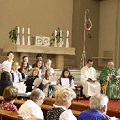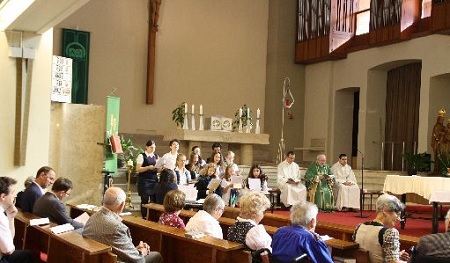 Das Motto „Ja, ich will euch tragen, bis zum Alter hin“ (Liedtext von Jochen Klepper nach Jes 46, 4) wurde sowohl musikalisch als auch in Fürbitten und Gabenbereitung aufgegriffen. Drei Symbole standen für die Lebenswirklichkeit von Menschen, die von Demenz betroffen sind: ein Musikinstrument für das Schöne im Leben, ein Familienfoto für die wichtige Bedeutung von Beziehung und eine Krücke für Sorgen, Ängste und Mühen. Musikalisch wurde der Gottesdienst vom Schulchor des Gymnasiums Sacré Coeur gestalten.