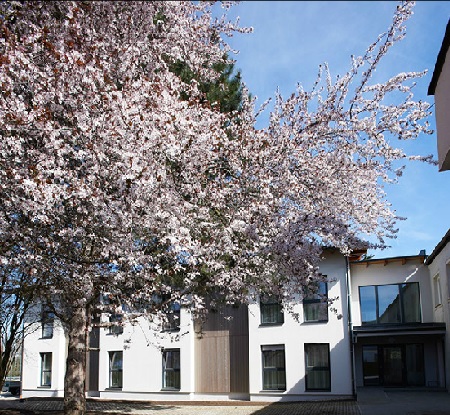 Bei strahlend schönem Wetter präsentierte Administratorin Sr. Ancilla Betting den neuen Wohntrakt für die 14 Ordensschwestern der Zisterzienserinnen-Abtei Marienkron im burgenländischen Mönchhof. Der Zubau war dringend notwendig geworden, weil die bisherige Unterkunft seit 1959 nicht mehr adaptiert worden war. Stiftbaumeister Arnold Link und Ökonom P. Markus Rauchegger, beide aus Heiligenkreuz, gestalteten zweckmäßige Zellen, die den Ordensfrauen endlich eine zeitgemäße, wenn auch bewusst einfach gehaltene Wohnsituation ermöglichen.