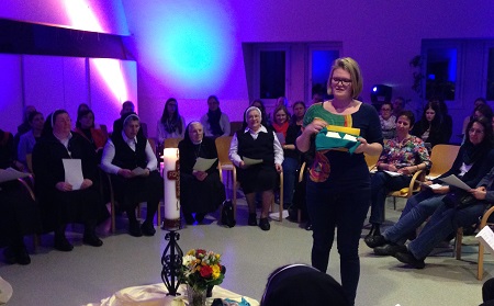 "Die Not der Zeit mit dem Blick Jesu und mit tiefer Empathie anschauen", stellt Sr. Judith Lehner an den Beginn des Abends. Sie freut sich sichtlich über die vielen Gäste. Monatlich laden die Schwestern zu diesem "Offenen Abend im Kloster" ein. Meditation, Orientierung am Auftrag und der Spiritualität der Gründerin, Austausch unter den Besuchern und vor allem gemeinsames Beten und Singen machen den Abend aus. Die Gründerin "Mutter Alfons Maria" war eine einfache, ungebildete, von Gesundheit schwache Frau, "die mit ihrem inneren Auge eine Gemeinschaft gesehen hat". So wurde sie zur Ordensgründerin mit zwei Zielsetzungen: 1. Gott suchen, Jesus betrachten und werden wie er. 2. Zu den Menschen gehen, die Hilfe brauchen wie Kranke, Gebärende, Mittellose ohne Unterschied des Standes.