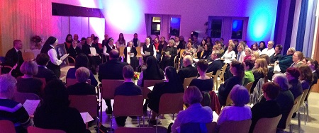 Der Abend ist eine Besinnung dorthin, zu den Menschen von Heute. Symbole werden von den TeilnehmerInnen des Abends in die Mitte gelegt und "aus dem Alltag heraus erklärt". Die Welt der Kinder, Jugendlichen und Familien erfüllt den Raum. Sr. Judith blickt am Ende ihres Impulses auf Franziskus und den jetzigen Papst: "Verlasst eure Komfortzonen, geht an die Ränder und Grenzen." Sie sagt das einfach und überzeugend. Eine Mitfeiernde am Weg hinunter zur Agape, bei der auch der 60. Geburtstag einer Mitschwester gefeiert wurde, sagt: "Ich wüsste kein Thema, mit dem ich nicht zu den Schwestern kommen könnte."