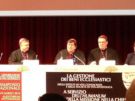 P. Rauch berichtet, auch Erzbischof José Rodriguez Carballo, der Sekretär der Religiosenkongregation, habe die Notwendigkeit von Richtlinien unterstrichen, die den theologischen und spirituellen Rahmen von Management und Verwaltung abstecken sollten, die über das Kirchenrecht und die zivilen Vorschriften der einzelnen Länder hinausgehen. „Solidarität mit den Armen bricht mit der Logik der begierigen Suche nach materiellem Wohlstand“. Carballo habe auch die Notwendigkeit betont, eine neue Mentalität zu schaffen, die in den Kategorien von Gemeinschaftssinn, Geschwisterlichkeit und die Priorität des Lebens aller Menschen gründet. Es war immer Lehre der Kirche, dass das Allgemeingut über den Besitz eines einzelnen zu stellen sei. Gerade Ordensgemeinschaften sollen die oberflächliche Solidarität, die durch kurzfristige Hilfe gekennzeichnet ist, zu einer fruchtbaren Solidarität führen, die in einer großen Verantwortung und Ernsthaftigkeit der wirtschaftlichen Tätigkeit mündet. Dazu ist auch viel Mut und Phantasie erforderlich.