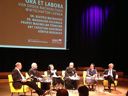 Wie gehen Menschen mit der Natur um, wie gehen sie mit anderen Menschen um, wie erreichen sie wirtschaftliche Dauerhaftigkeit? Das sind Kernfragen, wenn es um das Thema „Nachhaltigkeit“ geht. Rund um diese Fragen drehte sich ein zweistündiges Gespräch im ORF-Radiokulturhaus am Mittwoch, 7. November 2013. Zum Gespräch geladen hatte ORF-Redakteur Johannes Kaup vier Ordensleute als Expertinnen und Experten für nachhaltiges, bleibendes Arbeiten und Wirtschaften. Am Podium trafen sich die Präsidentin der Vereinigung der Frauenorden Österreichs, Sr. Beatrix Mayrhofer, der Vorsitzende der Superiorenkonferenz der männlichen Ordensgemeinschaften Österreichs, Propst Maximilian Fürnsinn, der österreichische Benediktiner-Primas Abt Christian Haidinger und die Provinzoberin und Steyler Missionsschwester Sr. Magdalena Eichinger. Dazu kam Günter Bergauer vom Bankhaus Schelhammer&Schattera, das die Veranstaltung unterstützte.