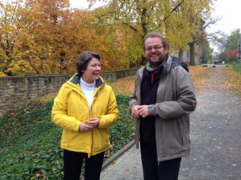 Foto: Ulkrike Köhler, eine Initiatorin für den Wiederaufbau von Volkenroda, und Ferdinand Kaineder, "Stammgast" im Kloster. Foto: [fk]
