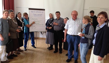 Annähernd 30 Ordensfrauen und Ordensmänner sind bei der Ordenswerkstatt am 16. Sept 2013 im Kardinal König Haus in Wien der Frage nachgegangen: Was hält unsere Tradition elastisch? Den Gesprächsanker bildete die von P. Bernhard Eckerstorfer vorgestellte