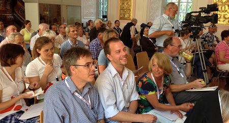 Die Innsbrucker Pastoraltheologin Anna Fidl-Ludescher erarbeitete in ihrem Referat Chancen und Wege des Glaubens heute in Europa und Österreich. "Es braucht viele Sozialformen von Kirche, weil es eine große Vielfalt und Individualität von Menschen gibt", betonte die Theologin: "Wenn für Brasilien stimmt, dass sie ein religiöses Volk sind, so heißt die Ansage in Europa und Österreich: Wir leben in einer pluralen Welt." Fidl-Ludescher konstatierte eine eindeutige Bewegung "weg von der institutionellen Religion." Genau das sieht die Pastoraltheologin als Gottes Zeit: "Das heute ist Gottes Zeit und ist unsere Zeit und das ist gut so." Es hat sich viel "konstantinischer Staub" angesammelt. Manche meinen: "Zu spät und unwillig wird der Transformationsprozess angegangen." Fidl_Ludescher sieht an "Lebenskreuzungen", "entlang von Kreuzwegen" und in den verschiedenen Sozialformen von Kirche wie in Gruppen, beim Pilgern, in Dienstleistungen und bei Events eine Chance, Kirche mit den Menschen zu bauen und zu fördern.