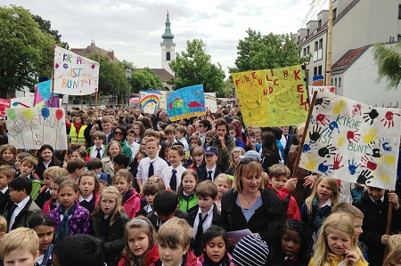 1.000 Schülerinnen und Schüler zeigen eine bunte Kirche