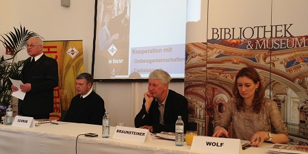 "Das Einschwingen in den Lebenshythmus eines Klosters ist bei vielen Menschen eine Sehnsucht, die wir mit unseren Angeboten gerne erfüllen", meint der Präsident von "Klösterreich" Abtpräses Christian Haidinger bei der Pressekonferenz am 23. April 2013 im Museumsquartier.