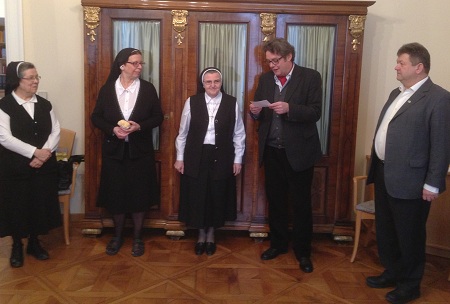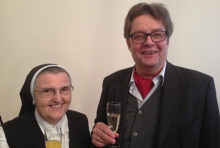 Rudolf Luttensteiner, der Geschäftsführer der Vereinigung von Ordensschulen, gratulierte der Vorsitzenden Sr. Cäcilia Kotzenmacher im Namen der Bürogemeinschaft zum 70. Geburtstag: "Du trägst mit deinem Wirken sehr viel dazu bei, in einer doch zum Teil unsicheren Zeit die richtigen Schritte in die Zukunft zu setzen. Auch wenn vieles nicht einschätzbar ist, sind deine Entscheidungen getragen von einem tiefen Glauben. Das ist dein wertvoller Beitrag, für den wir dir ganz besonders danken."