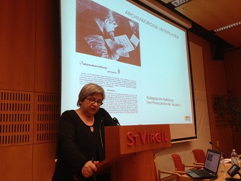 Helga Penz vom Referat für Kulturgüter der Ordensgemeinschaften Österreich referierte vor den Schulerhaltern und SchuldirektorInnen über Schulchroniken und Schularchive. Durch die Veränderungen oder den unmittelbaren Weggang der Ordensgemeinschaften wird auch die Archivfrage virulent.