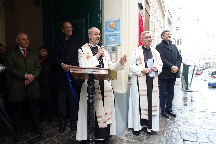 Der Enthüllung der neuen Gedenktafel wohnten auch Markus Figl, Bezirksvorsteher des ersten Wiener Gemeindebezirks, Heinz Faßmann, Präsident der Österreichischen Akademie der Wissenschaften, und der ungarische Botschafter Andor Nagy bei. Der ungarische Botschafter Nagy und der Präsident der Österreichischen Akademie der Wissenschaften Faßmann enthüllten die Gedenktafel. Abt Maximilian Heim und Abt Pius Maurer segneten sie.