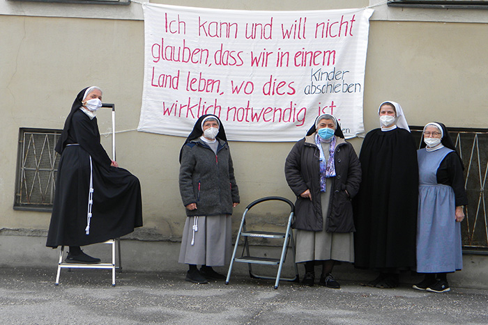 Ordensfrauen sind vielseitig engagiert und gut vernetzt. Sie setzen sich u.a. für geflüchtete Menschen und für Menschenrechte ein. Hier im Bild die Tertiarschwestern Hall in Tirol aus dem Jahr 2021. (c) Tertiarschwestern Hall Fotodownload