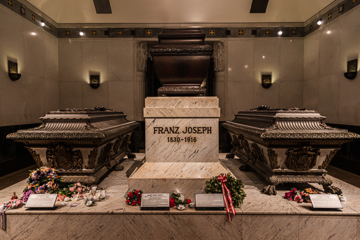 Die drei Gräber in der Franz-Josephs-Gruft: Kaiserin Elisabeth, Kaiser Franz Joseph und Kronprinz Rudolf. (c) ÖOK/emw
