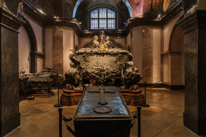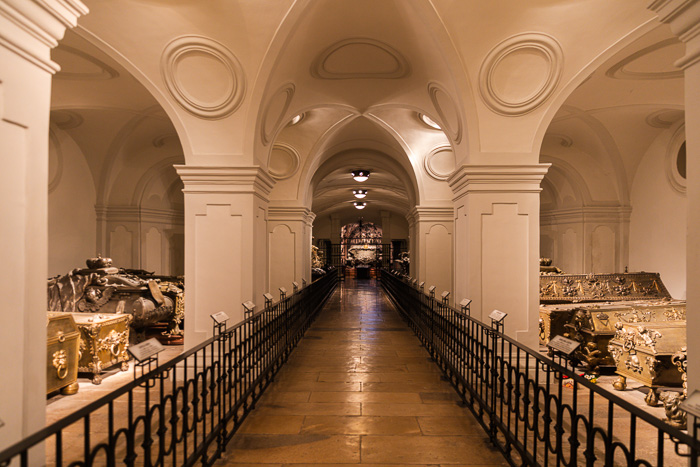 Das Erste, was mir in der Kapuzinergruft auffiel, war die Stille. Nichts war mehr zu hören vom Verkehr und Getümmel des Neuen Marktes. Umso klarer treten die eigentlichen Protagonisten hier in den Vordergrund: die 151 Särge der Habsburger, die hier ihre letzte Ruhe fanden.