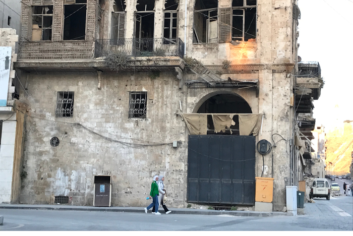 Das Aleppo von damals gibt es heute nicht mehr. Aleppo war lange Zeit einer der dramatischsten Kriegsschauplätze in Syrien. Ein großer Teil der von der UNESCO 1986 als Weltkulturerbe ausgezeichneten Stadt wurde 2016 vom syrischen Präsidenten Asad mithilfe der russischen Luftwaffe in Schutt und Asche gebombt. Apokalyptische Bilder der zerbombten Stadt mit den tausenden Toten gingen damals um die Welt. Blickt man von der mächtigen Zitadelle, die im 13. Jahrhundert auf einem 50 Meter hohen Hügel mitten in der Altstadt erbaut wurde, wird das Ausmaß der Zerstörung des Krieges sichtbar. Der Osten Aleppos gleicht auch heute noch einem Trümmerfeld, beschädigte und eingestürzte Häuser, kaputte Straßenzüge, zerstörte Stromleitungen, geplünderte Geschäfte. Es ist kaum vorstellbar, dass in diese Ruinen Menschen zurückkehren.