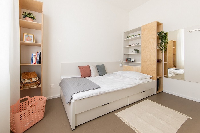 Das Studentenheim bietet 13 modern ausgestattete Einzelzimmer und wird von der Akademikerhilfe verwaltet. Man entspricht mit den neuen Wohneinheiten dem Trend unter Studierenden zum Singlehaushalt. Gleichzeitig stehen Räumlichkeiten zur Verfügung, um das Gemeinschaftsleben beizubehalten und zu fördern, berichtete Bernhard Tschrepitsch von der Akademikerhilfe. „Durch die Gemeinschaftsnutzung als Kommunität der Ordensbrüder und Studentenheim wird dem Haus neues Leben eingehaucht“, hielt der Regionalobere der Marianisten, Pater Helmut Brandstetter, fest.