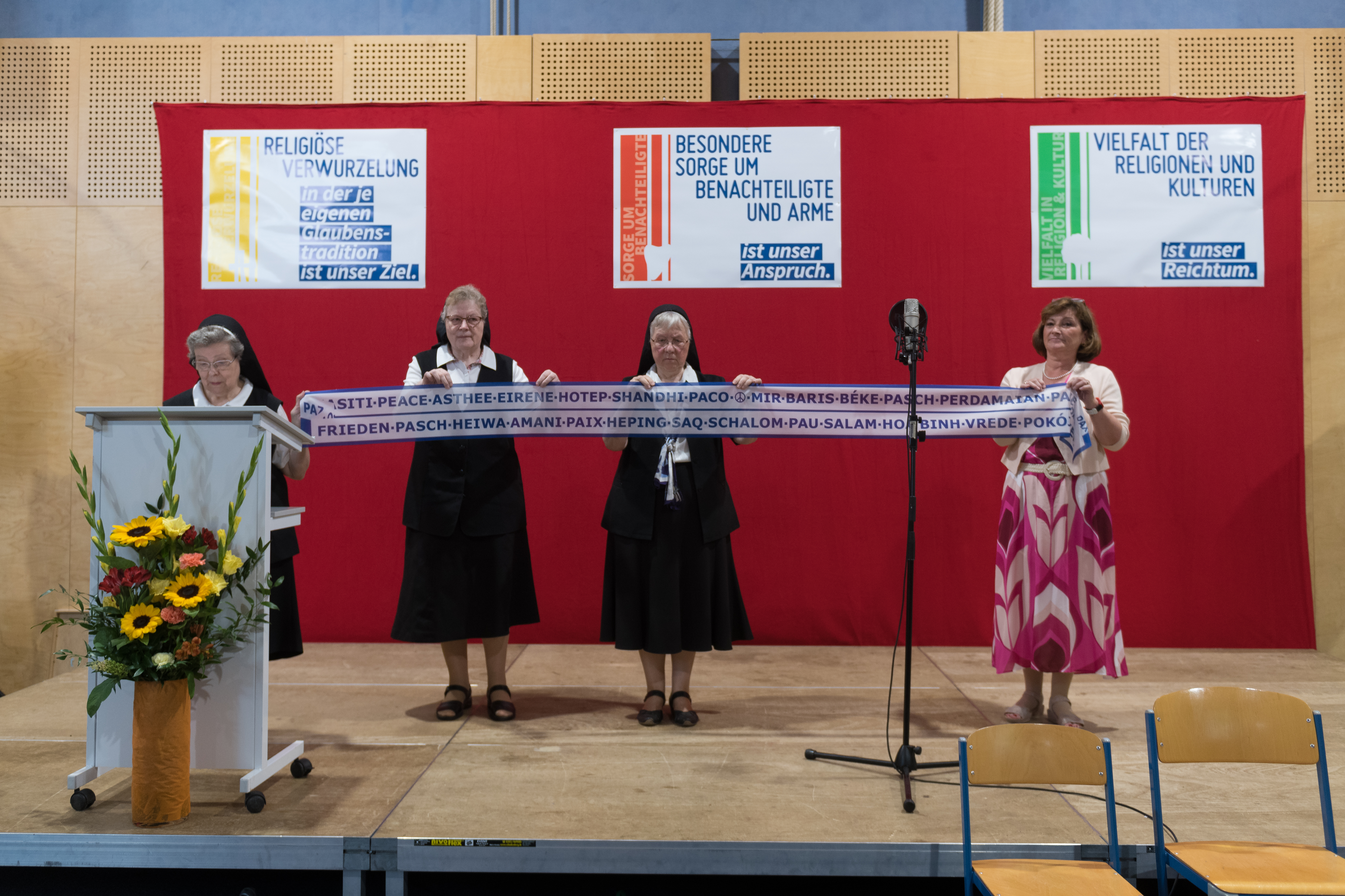 Die Schwestern übergaben in einem berührenden Übergaberitual das typische Friedensband der Friesgasse symbolisch an die Vertreterinnen der VOSÖ. Foto: zvg Fotodownload