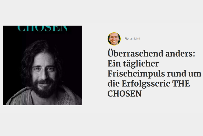 Unter dem Motto „50 x 50 Sekunden für den Heiligen Geist“ können die 50 Tage von Ostern bis Pfingsten mit einem täglichen Impuls inspirierend gestaltet werden. Ein täglicher Frischeimpuls rund um die Erfolgsserie THE CHOSEN macht den diesjährigen Pfingstkalender zu einem besonderen Angebot für Gruppen, Schulklassen oder Workshops.