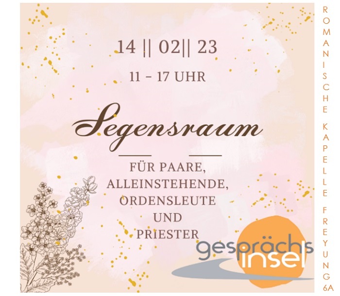 Am Valentinstag, dem 14. Februar 2023, öffnet die Gesprächsinsel im Wiener Schottenstift erstmals die Tore zum „Segensraum“. Von 11 bis 17 Uhr erwarten die Besucher:innen einige Stationen, darunter Segensgebete und Kerzen zum eigenen Gestalten.