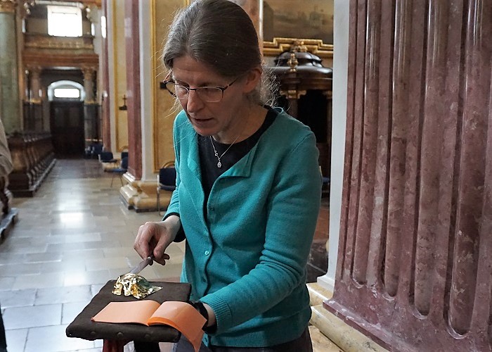 Bei der weltkirche.tagung am 28. Oktober 2022 erkundeten Sr. Ruth Pucher MC und Sr. Anneliese Herzig mit den Teilnehmer:innen in der Jesuitenkirche die Ambivalenz von Gold. Die beiden Vortragenden appellierten, die Schattenseiten von Gold zu erkennen und beim Kauf und Betrachten von Gold daran zu denken, dass mehr dahintersteckt als eine glänzende Oberfläche.