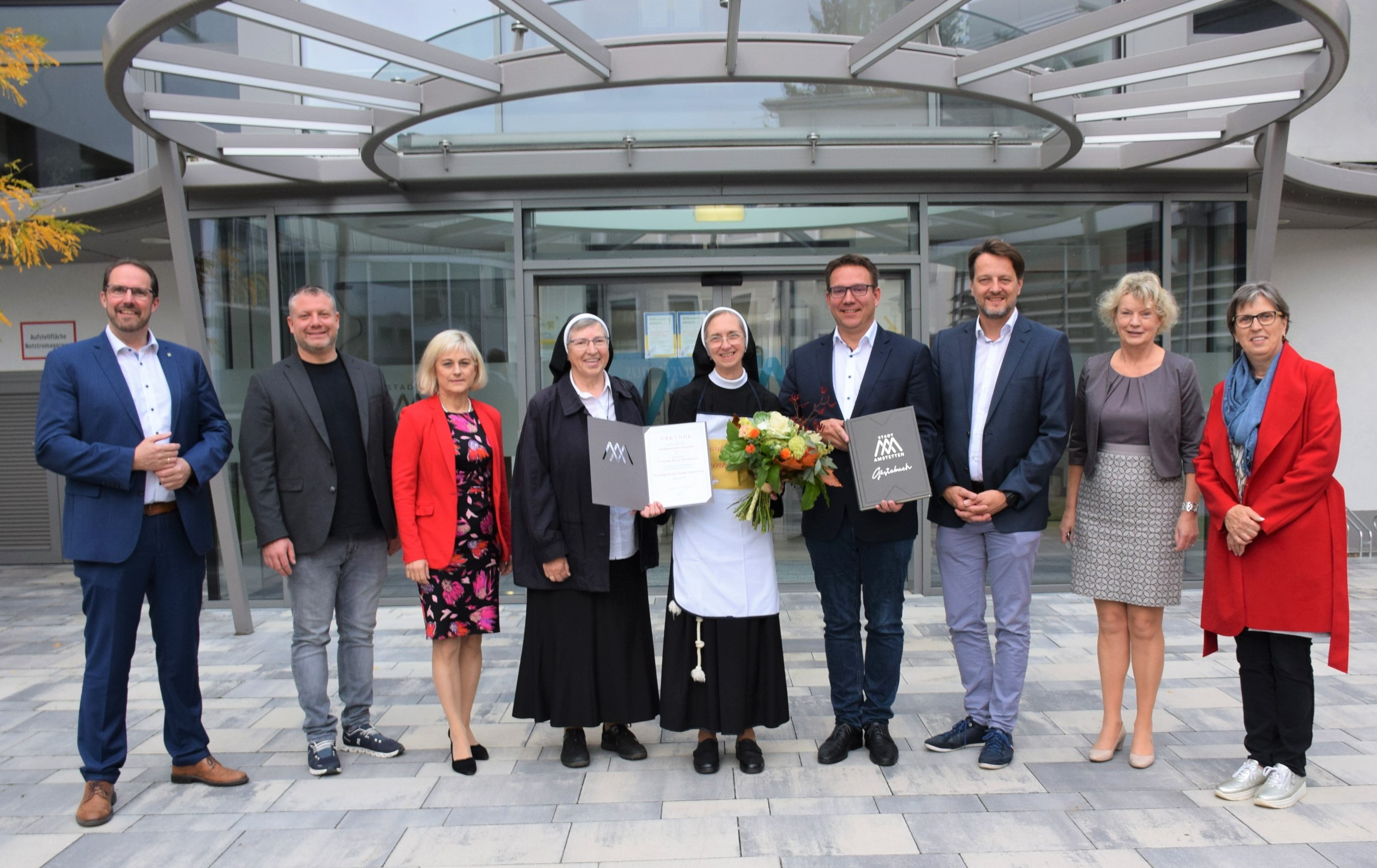 Sr. M. Cornelia Waldbauer von den Franziskanerinnen Amstetten erhält für die von ihr ins Leben gerufene Aktion "Kauf mehr und schenk es her!" den Sozialpreis der Stadt Amstetten. Seit 2017 wurden in 17 Aktionen knappe 1.800 Bananenschachteln voller Sachspenden und EUR 12.312.92 an Geldspenden gesammelt.