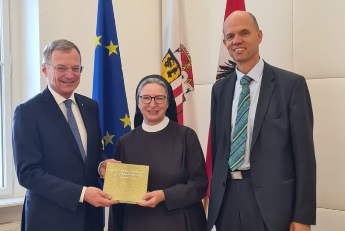Christian Lagger, Direktor der Elisabethinen Graz und Vorsitzender der ARGE Ordensspitäler Österreichs, und Sr. Barbara Lehner, Geschäftsführerin Elisabethinen Linz-Wien, trafen am Montag, 24. Oktober 2022 Landeshauptmann Thomas Stelzer.