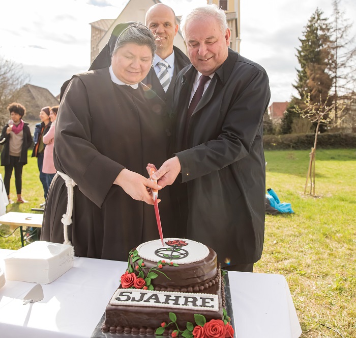 Das erste Hospiz für Obdachlose in Österreich, das von den Grazer Elisabethinen betrieben wird, feierte am 5. April 2022 seinen 5. Geburtstag. Landeshauptmann Schützenhofer gab sich die Ehre und schnitt gemeinsam mit Generaloberin Bonaventura Holzmann die Festtorte an.