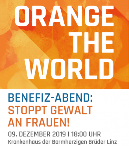"Jede 5. Frau wurde in ihrem Leben schon Opfer von körperlicher und/ oder sexueller Gewalt. Es ist Zeit, ein Zeichen gegen Gewalt an Frauen zu setzten.", deswegen unterstützen die Barmherzigen Brüder die Kampagne "Orange the world". Zu diesem Zweck findet heute am 9.12. um 18:00 eine Benefiz-Veranstaltung im Krankenhaus der Barmherzigen Brüder Linz statt.