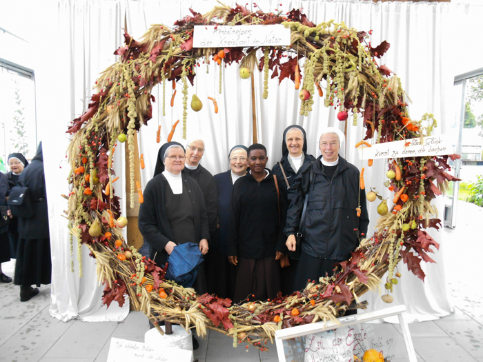 170 Ordensleute und Mitglieder der Säkularinstitute der Diözese Linz machten auch heuer wieder einen gemeinsamen Ausflug, der dieses Mal nach Stift Schlägl führte. Eucharistiefeier, Stiftsführung, Mußezeit im Arkadenhof und Lustwandeln durch die Landesgartenschau "Bio Garten Eden"- für jede TeilnehmerIn war ein Highlight dabei. Das man sich in der Gruppe fotoaffin zeigt und auch die Gestalter der Gartenschau schon an Dokumentationsmöglichkeiten dachten, zeigt sich am Fotomotiv zum Kreislauf der Natur mit dem Hinweis, dass das Glück zu jenen kommt die lachen: Es stimmt wohl - denn das Lachen und die Freude waren Begleiter an diesem Tag.