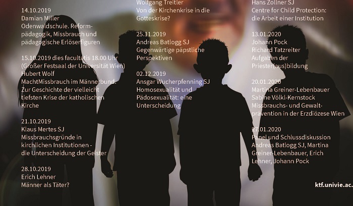 Am 7.10. startet die Vortragsreihe zum Thema "Sexueller Missbrauch von minderjährigen: Verbrechen und Verantwortung" im Hauptgebäude der Universität Wien. Durch die Reihe soll u.a. verdeutlicht werden: "Starke hierarchische Gefälle neigen dazu, sich der Kontrolle zu entziehen" und "Die Täterschaft ist überwiegend männlich", wie die Fakultät ankündigte. Wöchentlich werden Vortragende wie Mary Hallay-Witte, Christoph Kardinal Schönborn, Klaus Mertes und Ansgar Wucherpfenning sich mit unterschiedlichen Aspekten der Thematik auseinandersetzen.