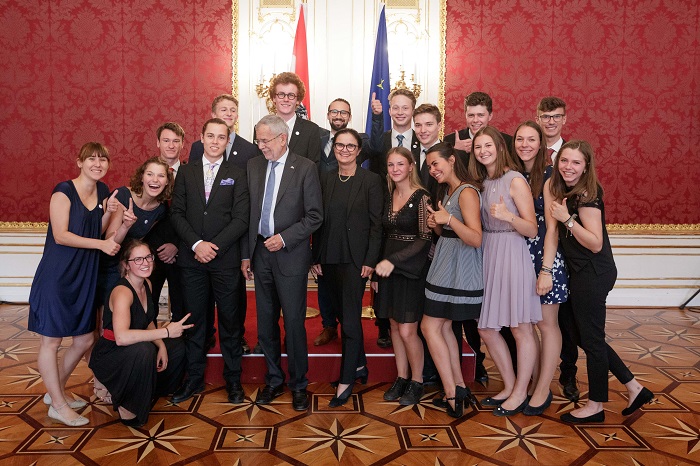 21 junge Erwachsene starten in ihren freiwilligen Auslandsdienst mit VOLONTARIAT bewegt. Bundespräsident Alexander Van der Bellen hat sie am 9. Juli 2019 offiziell verabschiedet.