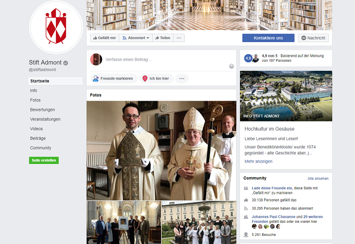 Posten, liken, teilen, kommentieren: Das Benediktinerstift Admont verfolgt eine ausgefeilte Marketing-Strategie, durch die das Kloster monatlich bis zu einer viertel Million Menschen erreicht. Tendenz stark steigend. Durchgestartet ist man vor rund einem Jahr. Seither wuchs die Zahl der erreichten Personen von 10.000 auf 225.000 pro Monat an. Eine viertel Million Menschen also, denen das Stift Admont insbesondere auch religiöse Botschaften übermittelt: „Uns Benediktinern ist es ein Grundauftrag, die Botschaft Jesu in alle Welt hinaus zu tragen. Das Internet dafür nicht zu nützen, wäre eine vertane Chance“, spricht Frater Vinzenz Schager. Vor allem auf Facebook sind die Ordensmänner aktiv und betreiben damit „online Seelsorge“.