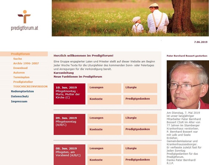 Seit 1996 betreibt der Redemptorist P. Hans Hütter unter www.predigtforum.at eine Online-Plattform, die Texte für sonn- und feiertägliche Liturgiefeiern zur Verfügung stellt. Am 7. Juni 2019 präsentierte P. Hütter die Zahlen für 2018: Jährlich können rd. 1.6 Mio. Seitenaufrufe verzeichnet werden.