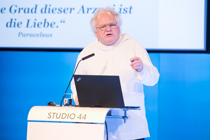 „Die beste Arznei für den Menschen ist der Mensch. Der höchste Grad dieser Arznei ist die Liebe.“ Diesen Satz von Paracelsus wählte Benediktinerpater Johannes Pausch, eben erst wiedergewählter Prior des Europaklosters Gut Aich, für seinen Eröffnungsvortrag beim 16. Forum Hospital Management am 20. März 2019 im Studio 44 im 3. Wiener Gemeindebezirk. Über 300 Teilnehmerinnen konnten die Veranstalter, darunter die Vinzenz Gruppe, begrüßen, unter ihnen Sr. Cordula Kreinecker, Generaloberin der Barmherzigen Schwestern vom heiligen Vinzenz von Paul, und Prim. Manfred Greher, Sprecher der Plattform der Wiener Ordensspitäler.