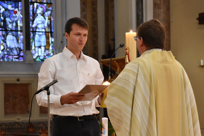 Emanuel Huemer legte am 29. September 2018 seine ersten Gelübde in der Gesellschaft des Göttlichen Wortes ab. Mit ihm feierten fünf Steyler Missionare ihre Gelübdejubiläen. „Lass mich frei werden von Vorurteilen und Anmaßung, von Angst und Kleinmut, um deine Veränderung weiterzutreiben auf dein Reich hin“, sprach Emanuel Huemer vor P. Stephan Dähler als Provinzial in Stellvertretung des Generalsuperiors und vor den Mitbrüdern in St. Gabriel.