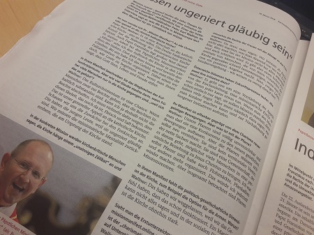 In der Ausgabe der "KirchenZeitung“ vom 18. Jänner 2018 spricht Missio Nationaldirektor P. Karl Wallner mit Heinz Niederleitner über die Initiative „Mission Manifest“. Die zehn „Thesen für das Comeback der Kirche“ betrachtet er vor allem als Botschaft an die Kirche – „also an uns selbst“.