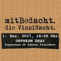 Die Notschlafstelle VinziNest feiert heuer ihr 25jähriges Jubiläum. Seit einem Vierteljahrhundert gewährt die vom Lazaristen Wolfgang Pucher ins Leben gerufene Einrichtung all jenen Schutz, die als Armutsmigranten nach Graz kommen. Unter dem Motto "mitBedacht - die VinziNacht" wird dieses Jubiläum am 1. Dezember 2017 mit einem Benefizkonzert im Orpheum Graz gefeiert. Der Reinerlös des Kartenverkaufs kommt zu 100 Prozent der Notschlafstelle VinziNest zugute.