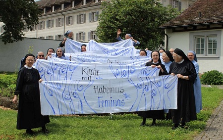 Nach zwei Monaten und mehr als 1.000 Kilometern zu Fuß aus dem Schweizer St. Gallen sind Pilgerinnen der Initiative "Für eine Kirche mit den Frauen" in Rom angekommen. Sie haben am 4. Juli 2016 ihre Anliegen in eine Messe im Petersdom "hingetragen". Mit dabei Abtpräses Christian Haidinger und viele Ordensleute aus der Schweiz und Österreich. Beim Pilgern ging die Botschaft mit, dass "Männer der Kirche in Zukunft nicht mehr ohne Frauen über deren Stellung, Rolle und Funktion entscheiden sollten".