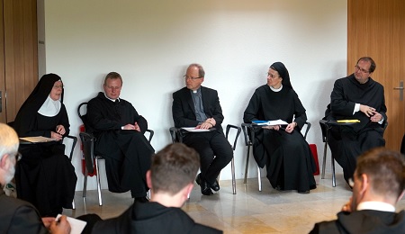 Mehr als 50 Äbte oder Prioren aus dem gesamten deutschsprachen Raum waren zur Salzburger Äbtekonferenz (SÄK) nach Edlibach in der Schweiz gekommen, um über die Zukunft ihrer Klöster zu sprechen. Inhalt des Treffens war auch das Thema "Frauen in der Kirche", zu dem die Vorsitzende der Vereinigung der Benediktinerinnen im deutschen Sprachraum (VBD), Priorin Irene Gassmann vom Kloster Fahr, sowie Vertreterinnen von anderen Benediktinerklöstern zu Wort kamen. Gastreferent war der Feldkircher Bischof Benno Elbs.