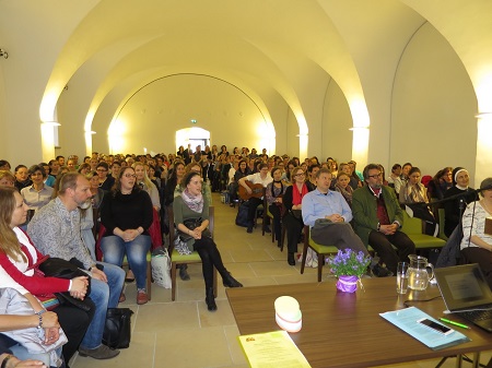 „Wie kann religiöse Vielfalt im Kindergarten und Hort nicht nur als Herausforderung gesehen, sondern so anerkannt werden, dass jedes Kind in seiner jeweiligen religiösen Identität wertgeschätzt wird?“ Mit dieser Frage beschäftigte sich die diplomierte Kindergartenpädagogin Dr. Helena Stockinger in ihrem Fachvortrag „Feiern Salma und Manu auch Ostern?“ vor mehr als 200 Mitarbeiterinnen und Mitarbeitern der Vereinigung Katholischer Kindertagesheime (KKTH) am 31. März bei den Dominikanern in Wien 1.