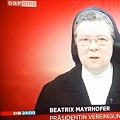 Am 10. März 2016 war Frauenorden-Präsidentin Sr. Beatrix Mayrhofer zu Gast in der ORF-Sendung ZIB 24. Im Mittelpunkt des Gespräches mit ZIB-Moderator Roman Rafreider stand die am Vortag veröffentlichte Stellungnahme für eine humanitäre Flüchtlingspolitik, die gemeinsam von einer Vielzahl von TheologInnen, Ordensleuten und kirchlichen EntscheidungsträgerInnen unterzeichnet worden war. Mayrhofers Botschaft: Zäune sind keine Lösung, denn jede und jeder ist unser Nächster. Die Frage sei vielmehr: Wer profitiert an dieser Situation?