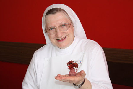 Sr. Ingeborg Feichtinger vom 1. Zentrum für Europäische Medizin in Bad Kreuzen hat ein ungewöhnliches Hobby: Sie häkelt die wohl kleinesten Vasen der Welt. Jaja, richtig gelesen: Sie häkelt Mini-Blumenvasen - aus Spaß an der Freud und als kleines Geburtstagsgeschenk, das sie ihren Gästen als nette Aufmerksamkeit überreicht.