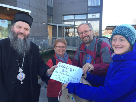 Startpunkt auf ihrem „Ökumenischen Pilgerweg für Klimagerechtigkeit“ war am 2. November 2015 für die Klimapilgerinnen und Klimapilger das Benediktinerstift Lambach. Es ging am Jakobsweg Richtung Vöcklabruck; und als erster Tagesordnungspunkt stand eine Führung durch das Christophorus Haus der MIVA-Zentrale in Stadl-Paura mit anschließendem bio-fairem Frühstück am Tagesordnungspunkt.