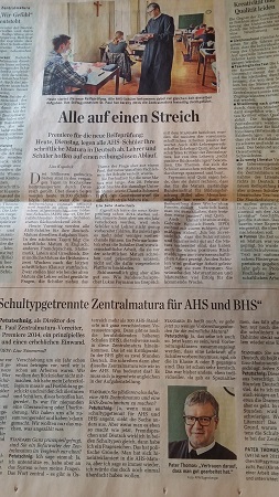 Am Dienstag, 5. Mai 2015, konnte die neue Reifeprüfung österreichweit Premiere feiern. Die Tageszeitung „Der Standard“ befragte dazu P. Thomas Petutschnig, Direktor des öffentlichen Stiftsgymnasiums der Benediktiner zu St. Paul, das als Vorreiter in Sachen neue Reifeprüfung gilt. Das Resümee des Pädagogen und „Zentralmatura-Profis“: ein prinzipielles Ja mit einem erheblichen Einwand.